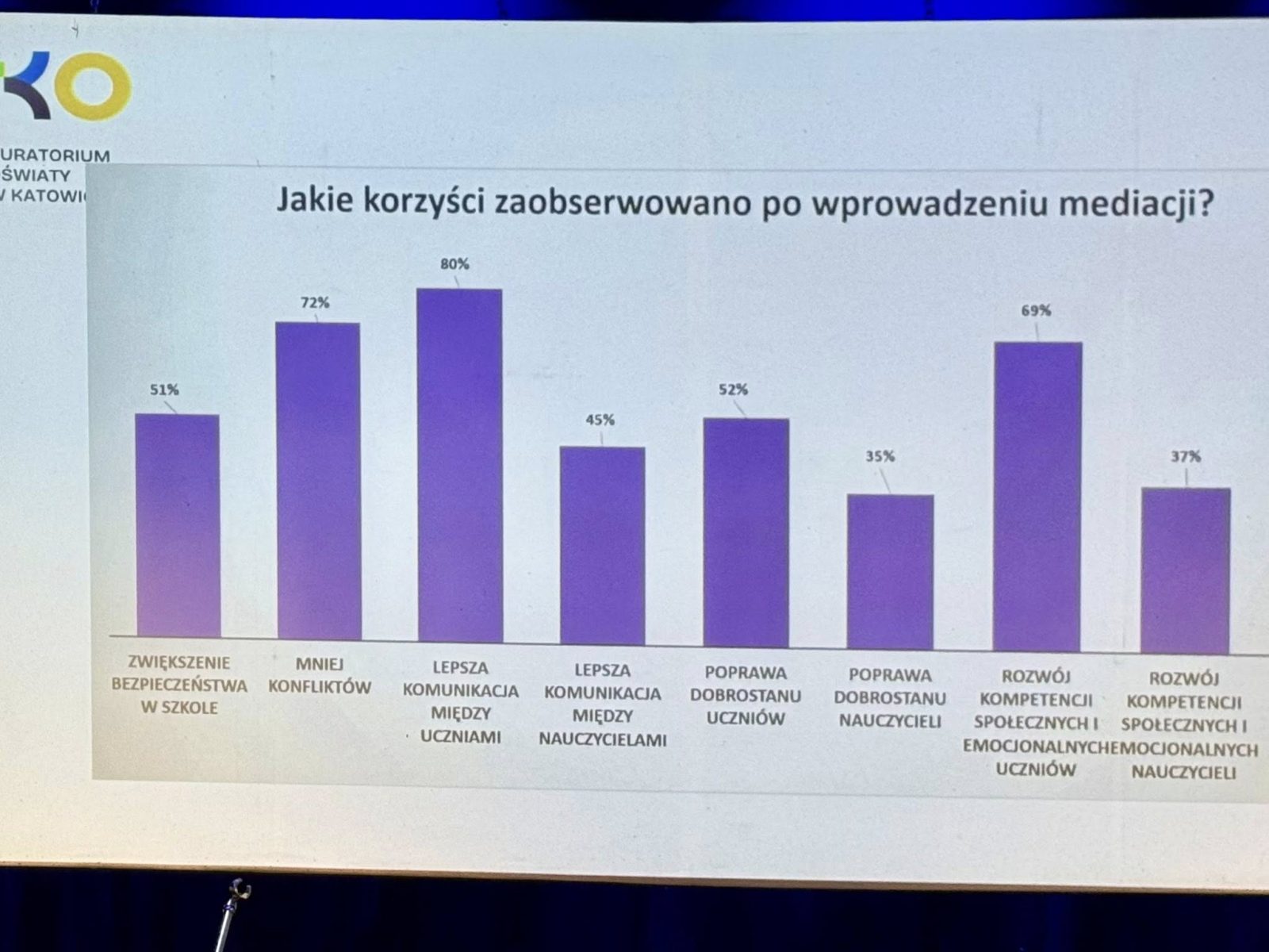 Temat jak najbardziej na czasie. Mediacje pojawiają się w coraz większej liczbie placówek oświatowych. Podczas konferencji mogliśmy poznać przykłady dobrych praktyk w tym zakresie, ale również usłyszeliśmy jak szkolne mediacje maja się do Kodeksu postępowania cywilnego.